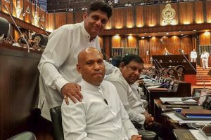 இன்று பிற்பகல் 1 மணிக்கு நாடாளுமன்றம் கூடிய சற்று நேரத்தில், சிறிலங்கா சுதந்திரக் கட்சியைச் சேர்ந்த உறுப்பினர்களான விஜித் விஜிதமுனி சொய்சா, இந்திக பண்டாரநாயக்க, லக்ஸ்மன் செனிவிரத்ன ஆகியோர், ஆளும்கட்சி வரிசையில் சென்று அமர்ந்து கொண்டனர்.