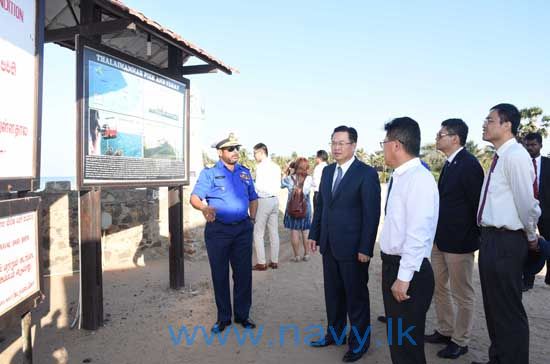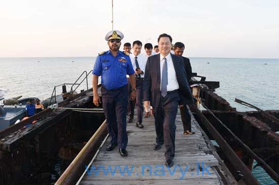 அதையடுத்து, தலைமன்னார் இறங்குதுறைப் பகுதியைச் சென்று பார்வையிட்ட சீன தூதுவர் உள்ளிட்ட அதிகாரிகள், சிறிலங்கா கடற்படையின் ரோந்துப் படகு மூலம், இந்திய கடல் எல்லைப் பகுதிக்கும் சென்றனர்.