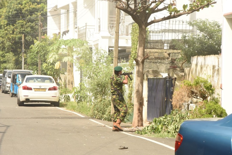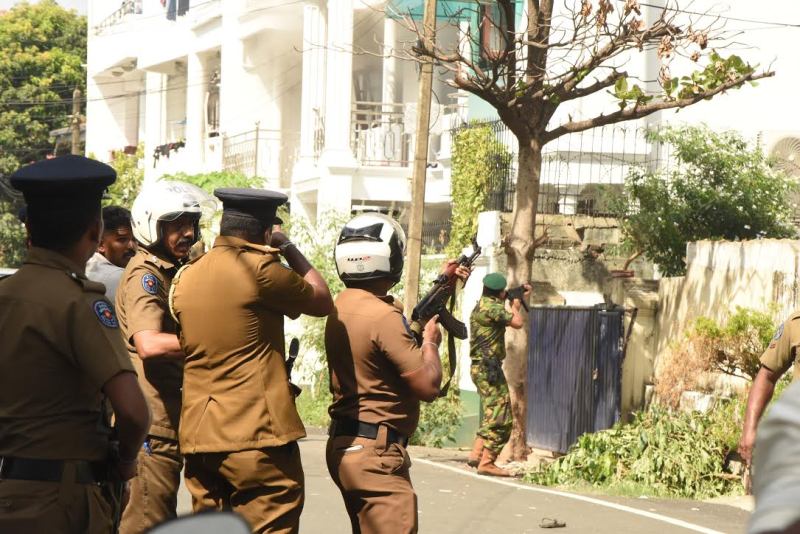 காலையில் இடம்பெற்ற குண்டுவெடிப்புகளை அடுத்து நடத்தப்பட்ட விசாரணைகளின் அடிப்படையில் நேற்றுப் பிற்பகல் தெமட்டகொடவில் உள்ள அடுக்குமாடி வீடு ஒன்றை சிறிலங்கா காவல்துறையினர் முற்றுகையிட்டு தேடுதல் நடத்தினர்.