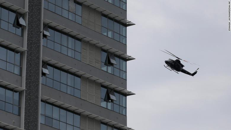 தெமட்டகொட அடுக்குமாடி வீட்டு மறைவிடத்தில் இருந்து ஒருவர் தப்பிச் சென்றதாக சந்தேகிக்கப்படும் நிலையில், அவரைக் கண்டுபிடிக்க சிறிலங்கா விமானப்படையின் உலங்கு வானூர்தியும் தேடுதல்களில் ஈடுபடுத்தப்பட்டது.
