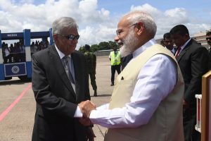 நேற்று முன்தினம் குறுகிய நேரப் பயணமாக சிறிலங்கா வந்திருந்த இந்தியப் பிரதமர் நரேந்திர மோடியை, சிறிலங்கா பிரதமர் ரணில் விக்ரமசிங்க கட்டுநாயக்க விமான நிலையத்தில் வரவேற்று, கொழும்புக்கு அழைத்து வந்தார்.