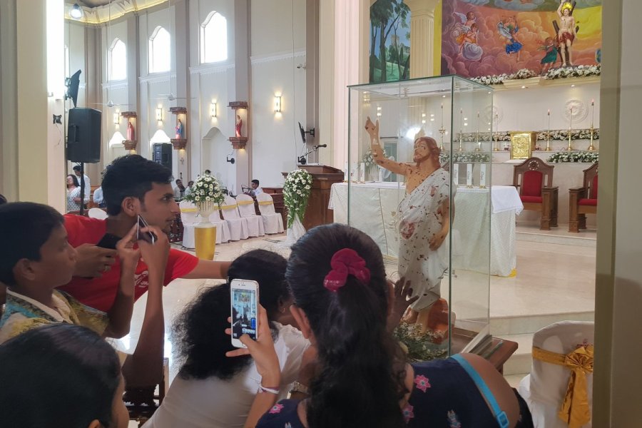 ஈஸ்டர் ஞாயிறு குண்டுத் தாக்குதலின் அடையாளச் சின்னமாக விளங்கும், இரத்தக்கறை படிந்த அந்தோனியார் சிலை கண்ணாடிப் பெட்டி ஒன்றுக்குள் வைக்கப்பட்டுள்ளது.