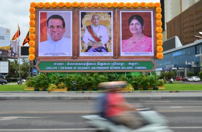 சிறிலங்கா அதிபரை வரவேற்கும் பதாதைகள் நொம்பென்னில் வைக்கப்பட்டிருக்கின்றன.