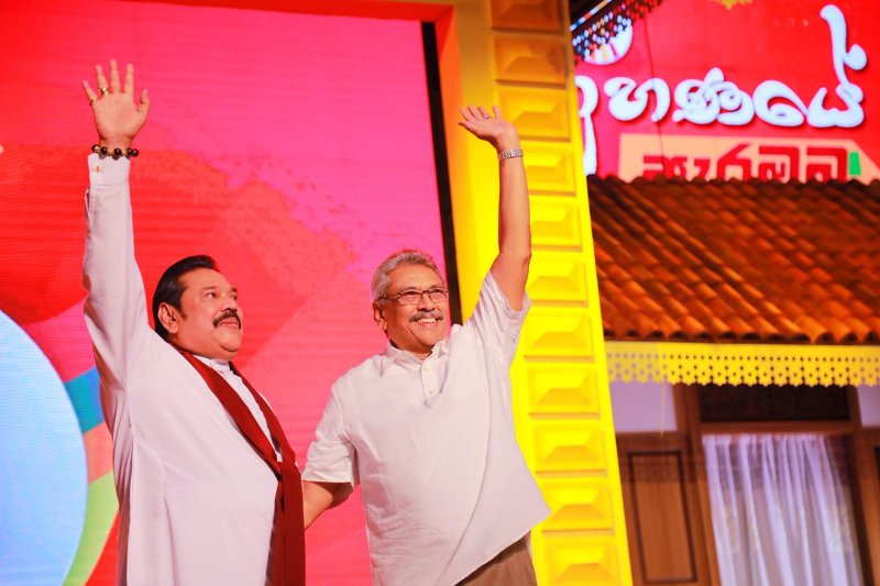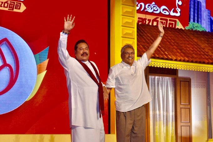 இதையடுத்து, கோத்தாவை வரவேற்கும் பாடல் ஒலிக்கவிடப்பட்டது. உடனடியாக கோத்தாபய ராஜபக்ச மேடையில்  மகிந்தவுடன்  காட்சி அளித்தார்.