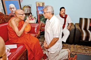 பேராதனை கெட்டம்பே விகாரைக்குச் சென்றிருந்த கோத்தாபய ராஜபக்ச, அதன் விகாராதிபதியான கெட்டம்பே ரஜோபாவனராமாதிபதி வண. கெப்பிட்டியாகொட சிறிவிமல நாயக்க தேரரின் முன்னிலையில் மண்டியிட்டு, அவரது ஆசியையும், ஆலோசனைகளையும் பெற்றுக் கொண்டார்.