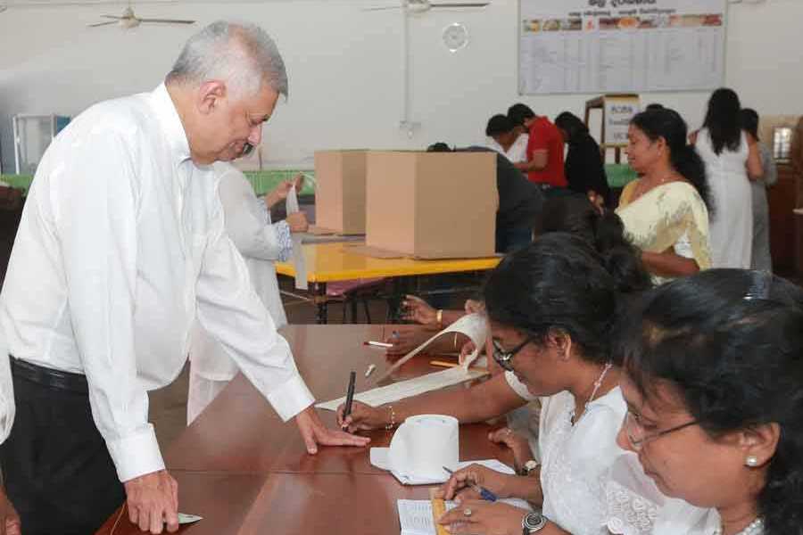 பிரதமர் ரணில் விக்ரமசிங்க கொழும்பு பல்கலைக்கழக வாக்களிப்பு நிலையத்தில் வாக்களித்தார்.