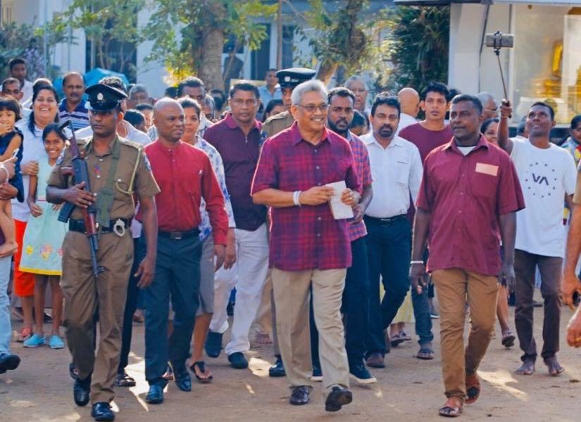 சிறிலங்கா பொதுஜன பெரமுனவின் வேட்பாளர் கோத்தாபய ராஜபக்ச நுகேகொட விவேகராமய விகாரையில் வாக்களித்தார்.