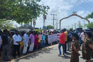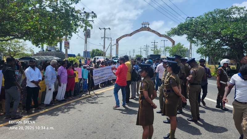 யாழ்ப்பாணம்- செம்மணியில் அமைந்துள்ள வரவேற்பு வளைவு அருகே இன்று முற்பகல் இடம்பெற்ற இந்த போராட்டத்தை வடக்கு, கிழக்கு ஒருங்கிணைப்புக் குழு ஏற்பாடு செய்திருந்தது.