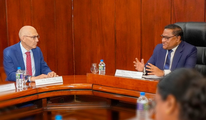 நேற்று கொழும்பு வந்து சேர்ந்த ஐ.நா மனித உரிமைகள் ஆணையாளர் இன்று காலை சிறிலங்கா வெளிவிவகார அமைச்சர் விஜித ஹேரத்தைச் சந்தித்துக் கலந்துரையாடியுள்ளார்.