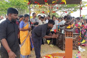 காலை 10.10 மணியளவில் அணையா விளக்கின் முன்பாக- செம்மணியில் புதைக்கப்பட்ட உறவுகளுக்கு மலர் அஞ்சலி செலுத்தும் நிகழ்வுகள் ஆரம்பமாகின.