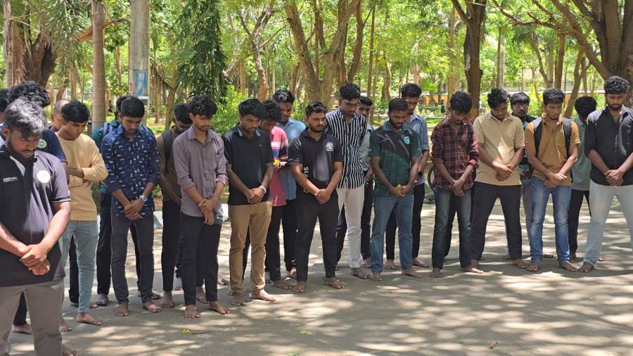இன்று காலை பல்கலைக்கழக மாணவர்கள் ஒன்று கூடி நினைவுப் படத்திற்கு மலர் தூவி அஞ்சலி செலுத்தினர்.
