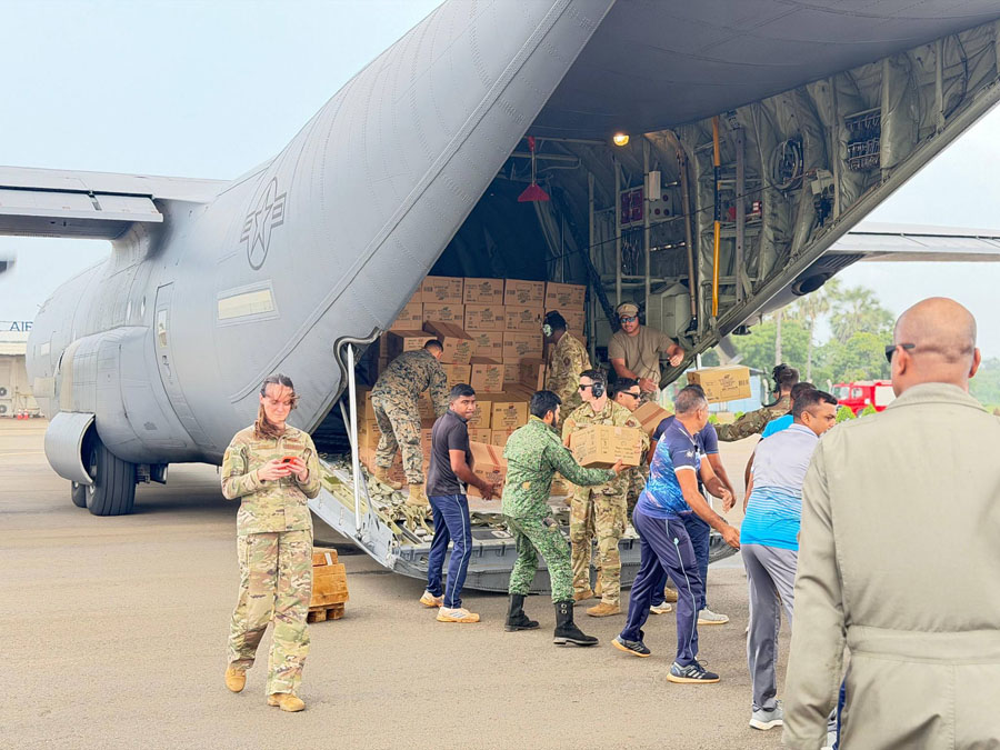 அமெரிக்காவின் இந்தோ- பசுபிக் கட்டளைப் பீடத்தின் இரண்டு விமானங்கள், சிறிலங்கா விமானப்படையுடன் இணைந்து நிவாரணப் பொருட்களை விநியோகிப்பதற்காக நேற்று கட்டுநாயக்க விமான நிலையத்தை வந்தடைந்தன.