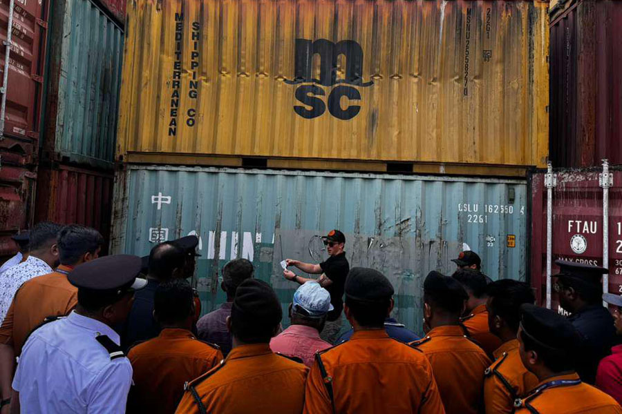 இரசாயன, உயிரியல், கதிரியக்க மற்றும் அணு விடயங்களை கையாளுவது தொடர்பாக அமெரிக்க கடற்படையின் வெடிபொருள் அகற்றும் நிபுணர்கள் சிறிலங்கா துறைமுக அதிகாரசபையின் பாதுகாப்புக் குழுக்கள் மற்றும் துறைமுக தீயணைப்புப் படையினருக்கு பயிற்சியளித்துள்ளனர்.