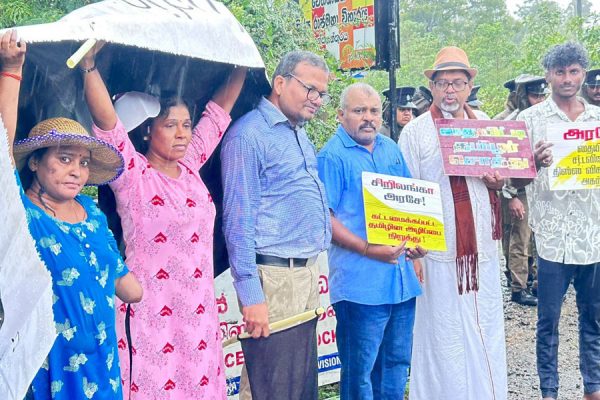 தையிட்டி விகாரைக்கு எதிராக கொட்டும் மழைக்கு மத்தியில் போராட்டம்