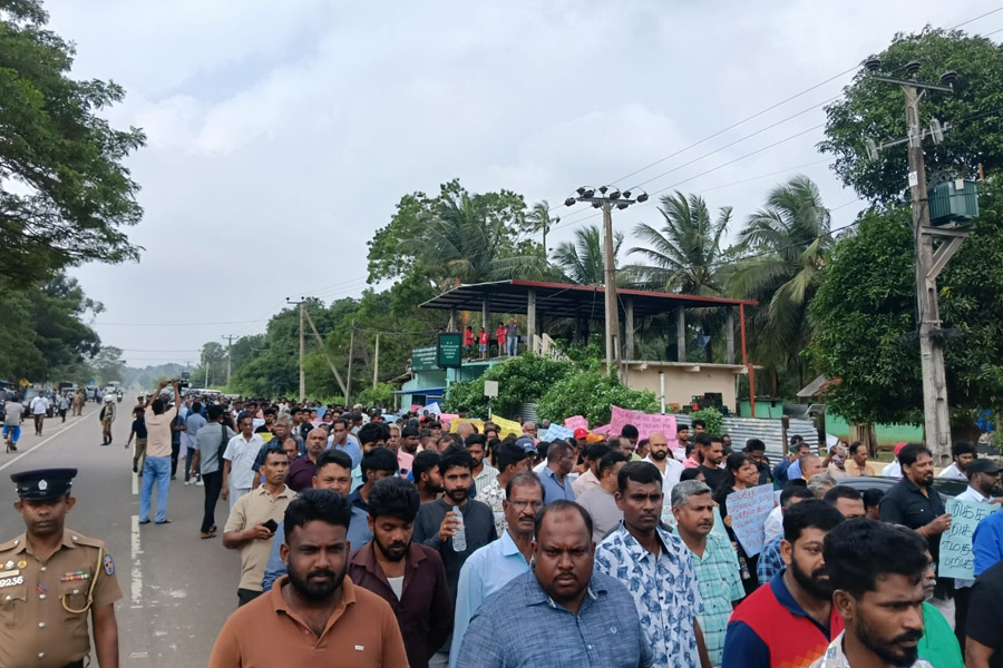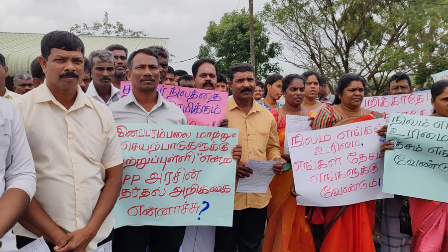போராட்டத்தில் ஈடுபட்டவர்கள் எமது நிலம் எமக்கு வேண்டும், வடக்கு கிழக்கு தமிழர் தாயகம், வேண்டாம் வேண்டாம் கிவுல் ஓயா திட்டம் வேண்டாம், வடக்கு கிழக்கை பிரித்தது ஜேவிபி போன்ற கோசங்களை எழுப்பினர்.