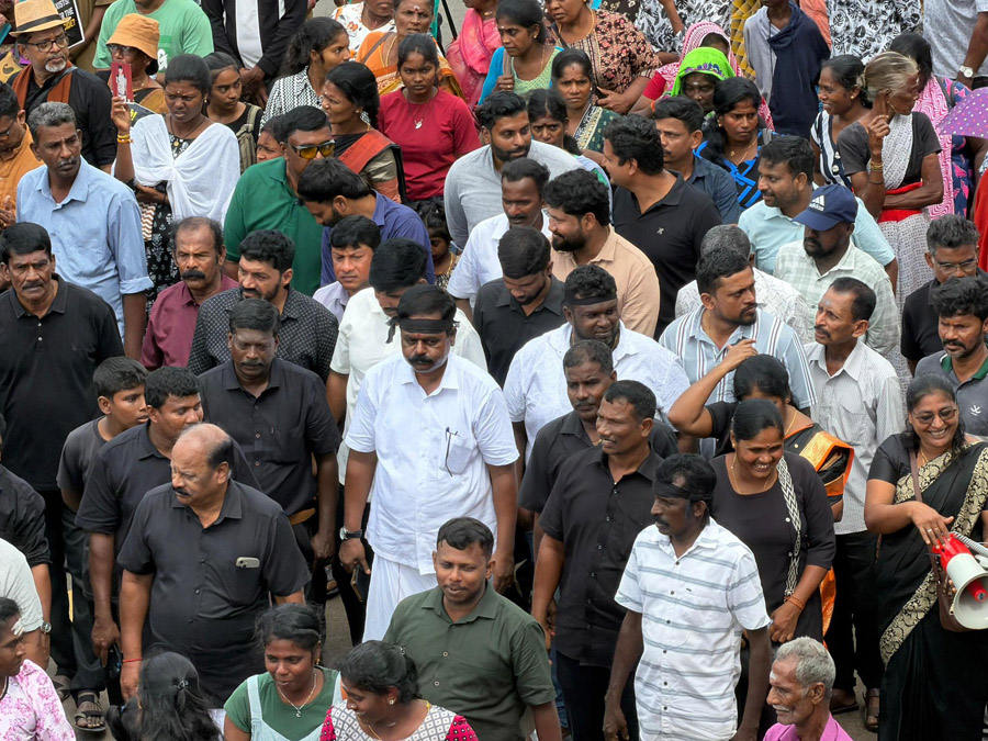 பேரணியில் பங்கேற்றவர்கள் கறுப்பு கொடிகளையும் பதாதைகள் மற்றும் சுலோக அட்டைகளையும் ஏந்தியிருந்தனர்.