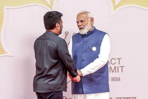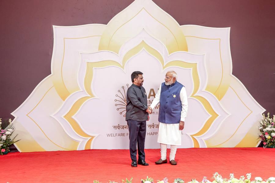 இதன்போது, சிறிலங்கா அதிபரை இந்தியப் பிரதமர் வரவேற்று அவருடன் உரையாடியுள்ளார்.