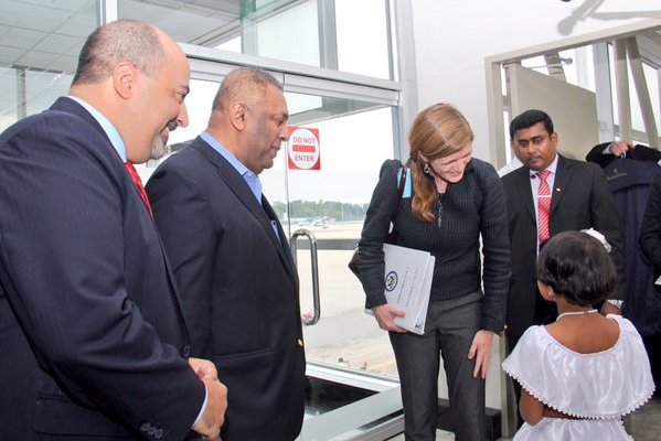 ஐ.நாவுக்கான அமெரிக்கத் தூதுவர் சமந்தா பவர் மூன்று நாள் பயணமாக இன்று பிற்பகல் சிறிலங்காவை வந்தடைந்தார். புதுடெல்லியில் இருந்து விமானம் மூலம் கட்டுநாயக்க விமான நிலையத்தை வந்தடைந்த, சமந்தா பவரை, சிறிலங்கா வெளிவிவகார அமைச்சர் மங்கள சமரவீர, வரவேற்றார்.