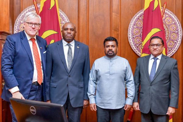 சிறிலங்காவுக்குப் பயணம் மேற்கொண்டுள்ள பிரித்தானிய துணைப் பிரதமர் டேவிட் லாமி, சிறிலங்கா அதிபர் அனுரகுமார திசாநாயக்கவை இன்று காலை அதிபர் செயலகத்தில் சந்தித்துப் பேச்சு நடத்தியுள்ளார்.